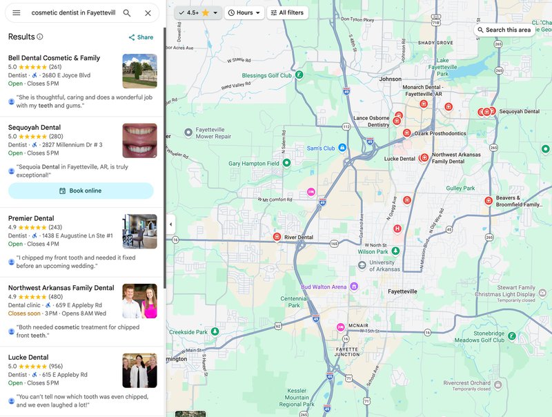 Hey Google. What are the best cosmetic dentists in Fayetteville-Springdale-Rogers, AR-MO?